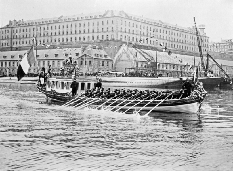 Au tournant du XXe siècle, ce sont deux présidents de la IIIe République qui défilent à Brest dans le canot et en majesté. Félix Faure, en 1896, puis Émile Loubet, en 1902. Une dernière fois, l’esquif de parade remonte la Penfeld lors du triomphe de l’École navale, en 1922.