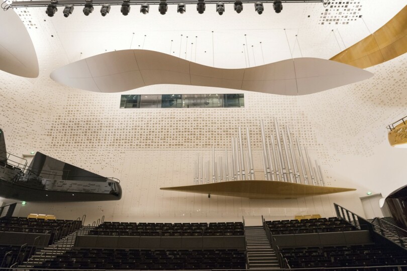 Esquif aérien en surplomb sur la salle, l’orgue doté des dernières innovations technologiques s’intègre parfaitement dans l’architecture de Jean Nouvel. Si sa facture est autrichienne -la célèbre maison Rieger-, son principal artisan est un Français, Michel Garnier, qui s’y consacra la nuit, de 23 heures à 8 heures, pendant huit mois.
