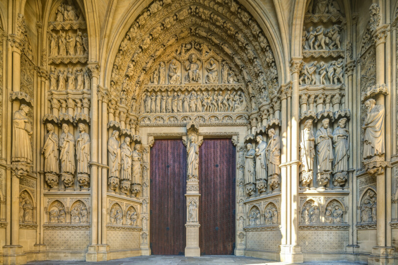 Paul Tornow, architecte chargé par l’empereur Guillaume II de restaurer la cathédrale, propose l’actuel portail néogothique inauguré en 1903. "Dès l’origine, Saint-Étienne de Metz eut la particularité d’intégrer à son architecture une autre église, Notre-Dame-la-Ronde, dont on remarque les gros piliers à l’entrée de la nef, commente monseigneur Lagleize. Elle est donc le résultat, au fil des siècles, d’un jeu de construction tout à fait intéressant. C’est une cathédrale à la riche histoire, hélas trop méconnue. Ceci est en partie dû au fait que la grande recension des cathédrales françaises eut lieu lorsque Metz était allemand."