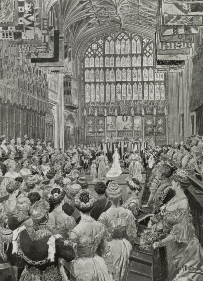 Quand il s’agit, en 1863, d’organiser l’union du prince de Galles, le futur Édouard VII, elle impose Windsor. Le pli est pris. De 1866 à 1882, quatre autres de ses enfants vont se marier au château: Helena, Louise, Arthur et Leopold. À la génération suivante, le sanctuaire sert de cadre aux noces des princesses Marie-Louise de Schleswig-Holstein en 1891, Alice d’Albany en 1904 et Margaret de Connaught en 1905.