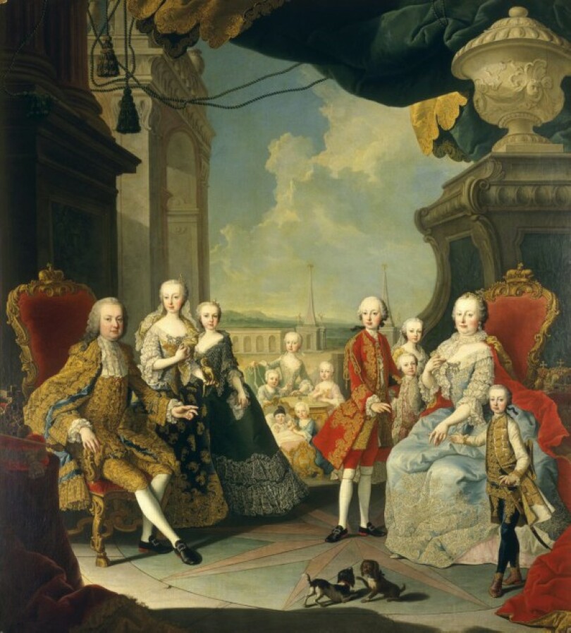 Contrairement à la plupart des monarques de son temps, Marie-Thérèse ne se contente pas de mettre au monde ses enfants, elle veille à leur bien-être, leur santé et leur éducation, se montre en public à leurs côtés.