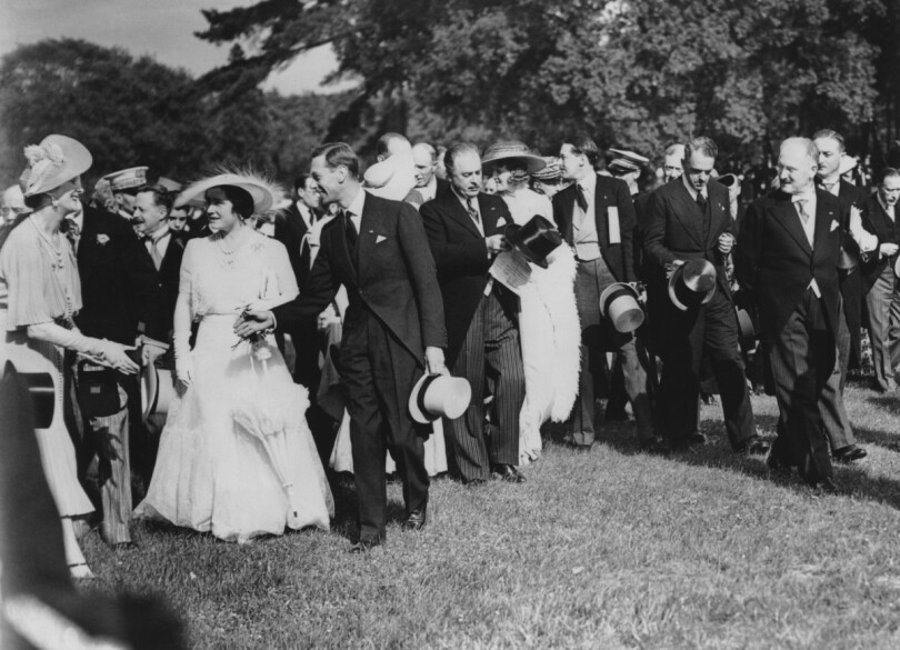 L'affection réciproque qui la lie aux Français trouve sans doute son apogée en juillet 1938, un peu moins de deux ans après l'accession au trône de son conjoint, lorsqu'elle se rend pour la première fois en visite d'État à Paris. Endeuillée par la disparition récente de sa mère, l'épouse de George VI a fait confectionner par Norman Hartnell une garde-robe entièrement blanche, inspirée des belles aristocrates en crinoline autrefois peintes par Winterhalter.