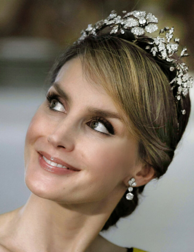 Depuis l’avènement de son époux, la reine Letizia a délaissé ces diadèmes relativement modestes pour au contraire arborer les joyaux les plus spectaculaires des reines d’Espagne.