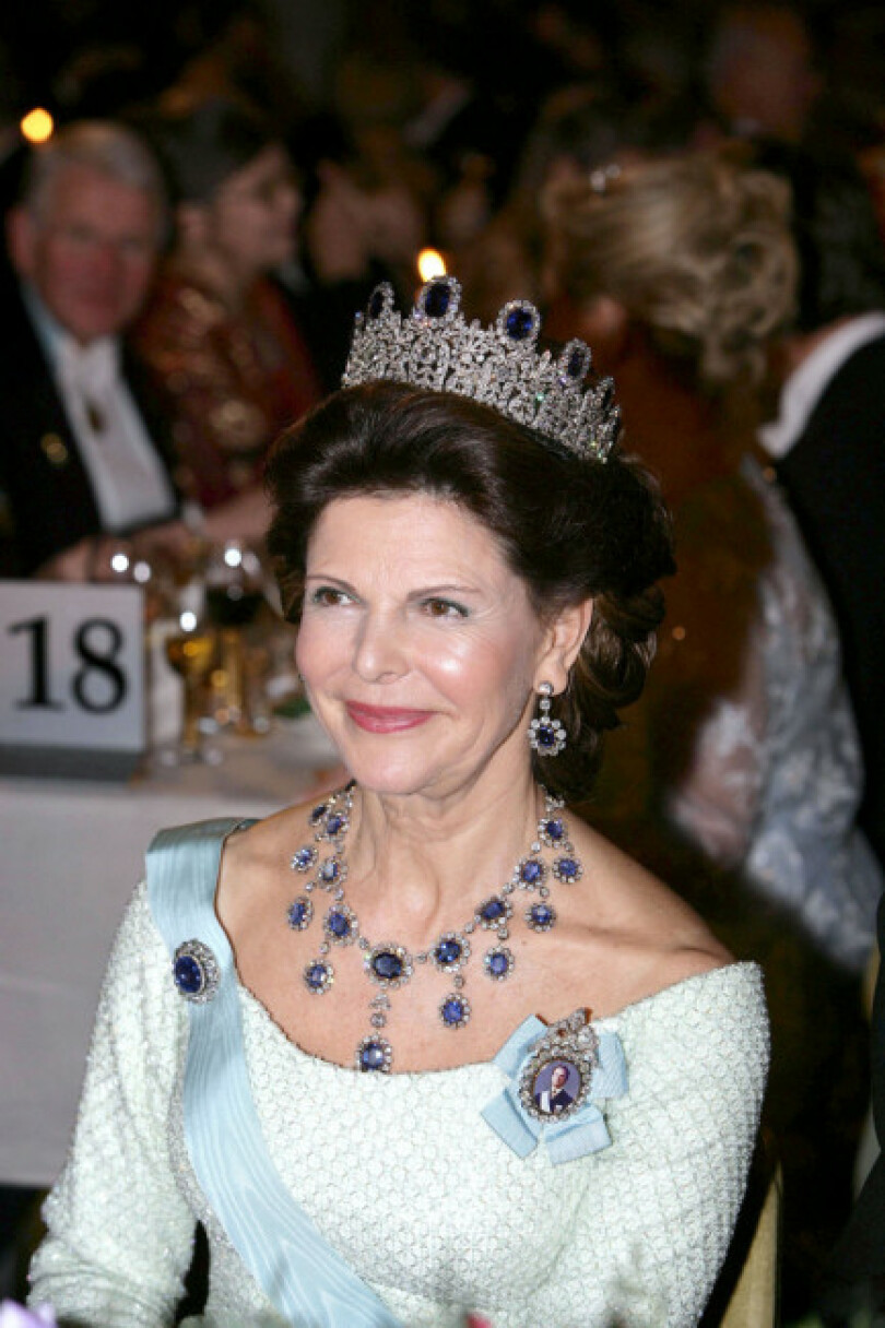 C’est à cette époque que les plus beaux diamants aujourd’hui portés par la reine Silvia –le fameux diadème, une rivière et une paire de pendants d’oreilles– entrent dans le patrimoine royal suédois. Ces diamants, tout comme le collier et le diadème de saphirs, sont, semble-t-il, réservés à l’usage de la reine régnante. Heureusement pour la princesse héritière Victoria, la collection Bernadotte comprend près d’une dizaine de diadèmes différents. Autant de colliers, de broches et de boucles d’oreilles assortis. Elle n’a donc que l’embarras du choix.