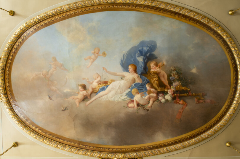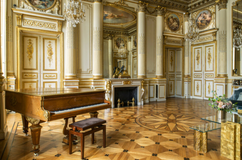Au plafond, Euterpe, la muse de la musique, joue du triangle en compagnie d’un petit amour. Pour dialoguer avec elle, la maison a investi dans un quart-de-queue Pleyel de 1920 en bois de rose superbement restauré par la maison Nebout. La musique peut à nouveau résonner dans le salon Chopin. La réhabilitation de l’hôtel particulier permet de retrouver la circulation d’origine entre les pièces, mais aussi leur fonction.