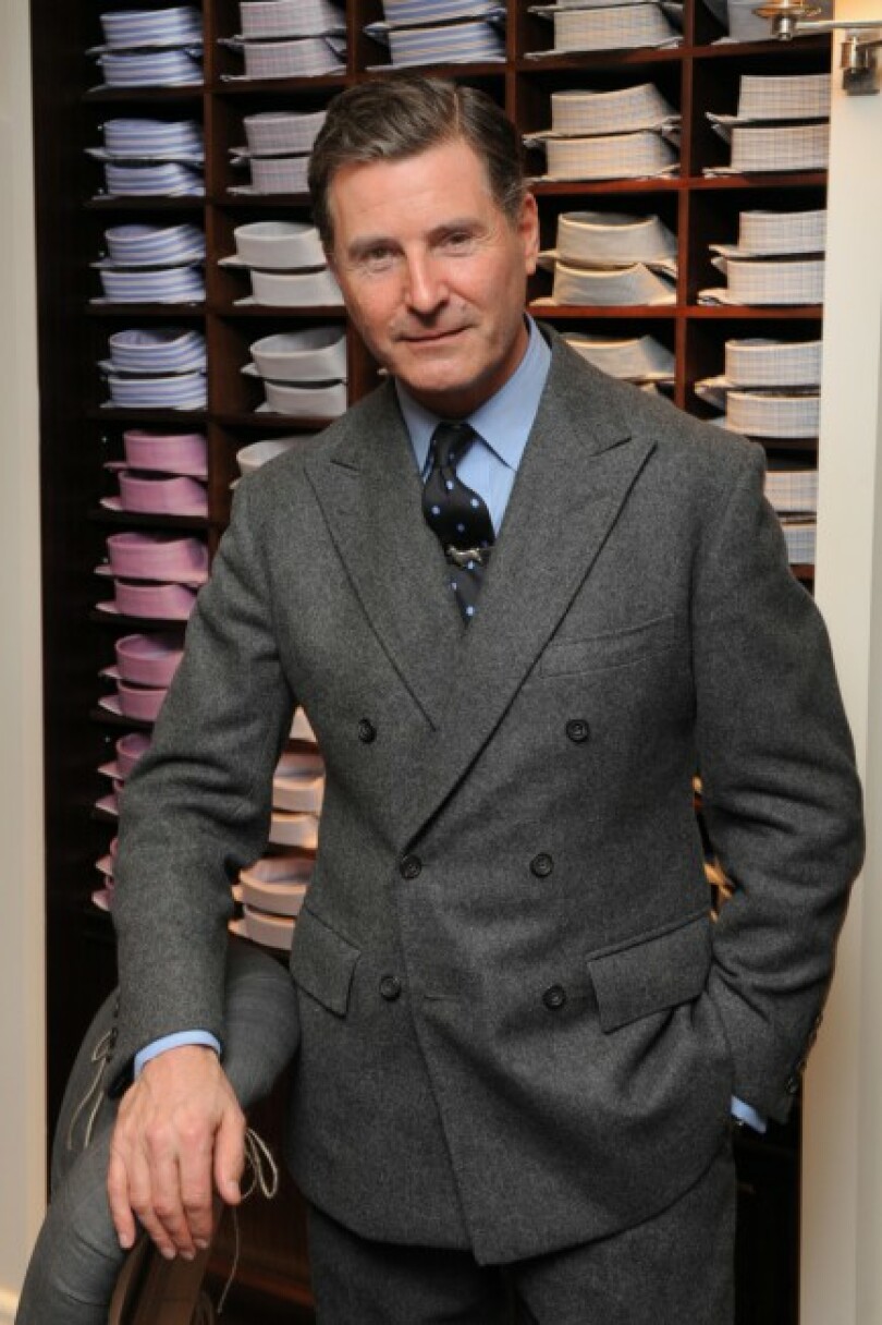 La pièce maîtresse de son dressing demeure le blazer: "Indispensable, été comme hiver, habillé ou décontracté, croisé ou simple, c’est un peu la petite robe noire masculine." Depuis octobre 2013, dans le second point de vente parisien du boulevard des Capucines, le maître tailleur venu de la maison mère officie pour un nouveau service sur mesure et grande mesure.