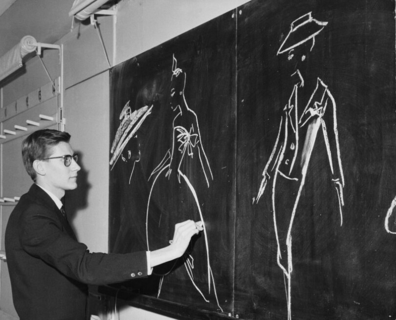 Yves adore peindre. Yves, qui veut être décorateur, habille ses soeurs et les amies de sa mère. Il envoie des dessins de mode au tout puissant directeur de Vogue, Michel de Brunhoff, qui lui demande d’abord de passer son bac. Bachot en poche, Yves tente le concours de la chambre syndicale de couture. Il gagne un prix, part pour Paris. Végète, déprime. Expédie 50 autres croquis à Monsieur de Brunhoff. Son talent éclate à un point tel qu’il le recommandera chaleureusement à Christian Dior. La première à être prévenue de la démarche? Une certaine Edmonde Charles-Roux, alors en voyage en Italie…