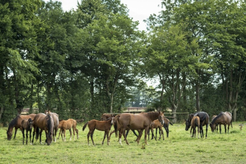 Outre les trois étalons du domaine, plus de 200 chevaux sont, en effet, élevés au haras pour y devenir de futurs champions."Ils sont répartis par tranches d'âge, explique le propriétaire en menant la visite. Ici les poulains avec leurs mères, qui seront sevrés dans quelques semaines. Dans cet autre pré, les yearlings, ceux que ma femme appelle "les ados" et qui ont entre un et deux ans. Nous les élevons jusqu'à ce qu'ils partent au débourrage puis chez des entraîneurs pour se préparer à la compétition."