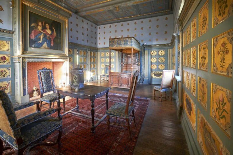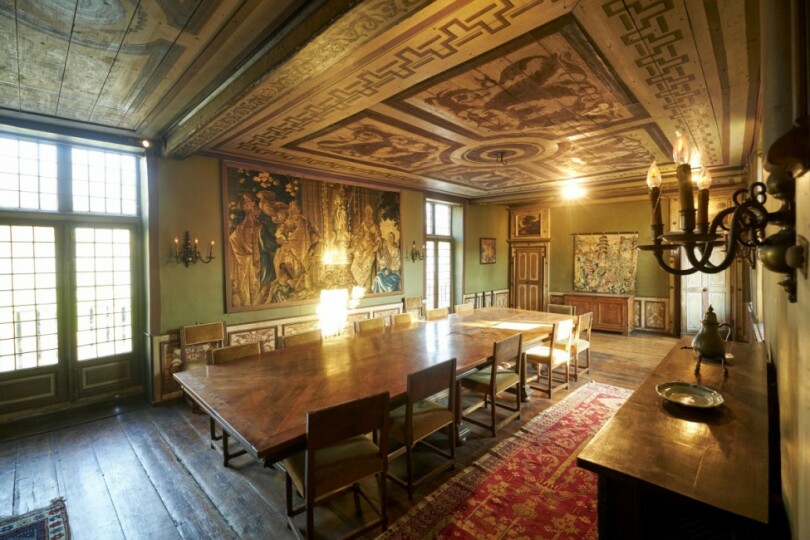 Déambuler au fil des 2.500 m2 du château promet bien des surprises. Si une petite cure de jouvence s’avère nécessaire à la bâtisse pour retrouver sa superbe, des joyaux se cachent derrière les portes des innombrables pièces. Dans la chambre dite "Des fleurs", ce sont des panneaux de bois Renaissance provenant du château d’Ancy-le-Franc qui ornent les murs.