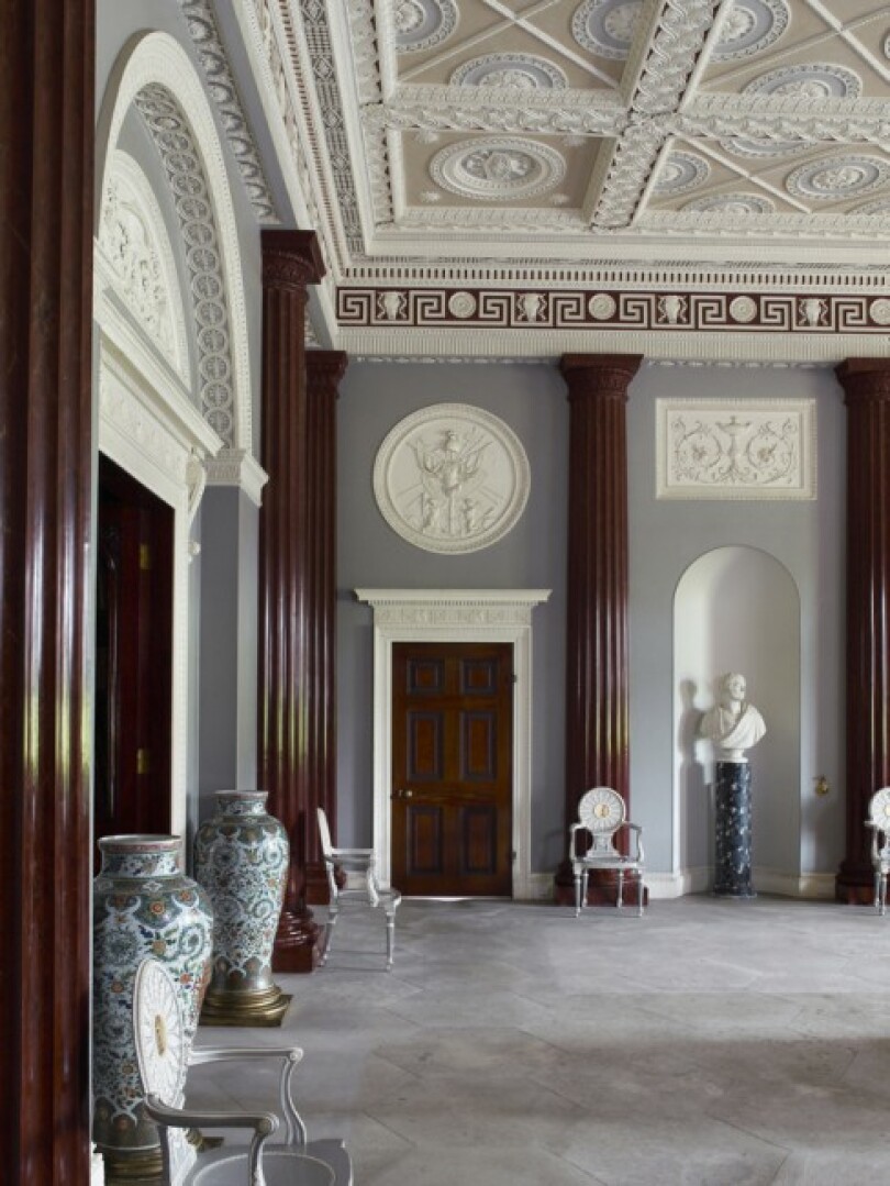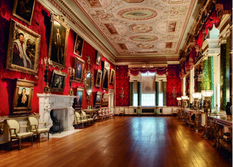 La galerie est sans conteste leur chef-d’oeuvre commun. La cheminée, dessinée par Adam lui-même en 1776, est toujours là. Au plafond, les exploits amoureux des dieux de l’Olympe sont également de la main du maître. Pour orner les vingt-trois mètres de long de la pièce, Chippendale déploie candélabres et chérubins dans le plus pur style George III.