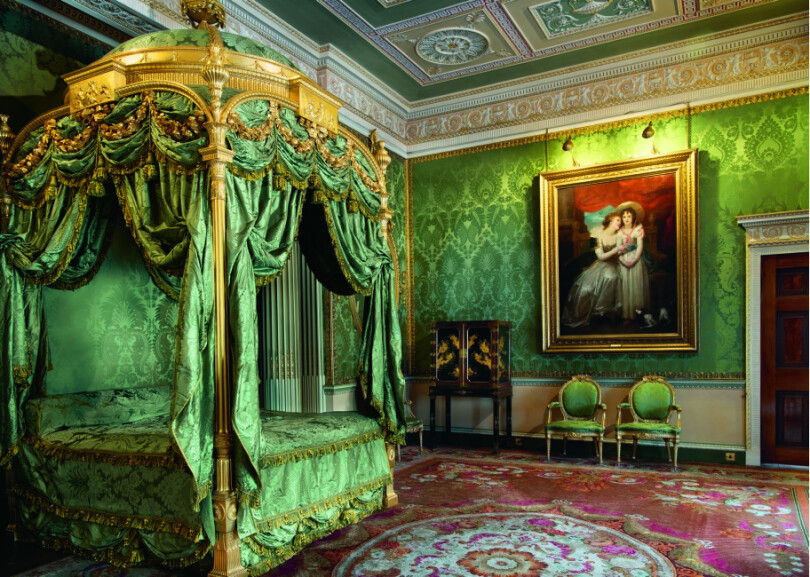 Le lit est un autre joyau, Thomas Chippendale propose une fantaisie architecturale en bois sculpté et doré, drapée d’un damassé de soie verte. Livré en 1773, le baldaquin coûta la bagatelle de 250 livres au commanditaire… auxquels s’ajoutèrent les 150 livres de matelas –trois en tout–, les draps et les polochons, ce qui en fait le meuble le plus cher jamais réalisé par l’artiste. Démonté, il fut totalement oublié dans les réserves avant d’être redécouvert dans les années 1970.