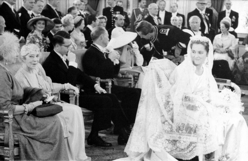 Bientôt, place des Palais, les acclamations fusent au passage du cortège nuptial annoncé par l’escorte royale à cheval. Depuis leur limousine noire décapotée, les fiancés saluent sans cesse la foule innombrable, au long du trajet jalonné par des détachements des forces armées. Parvenue au pied des marches de la cathédrale, la voiture s’immobilise.