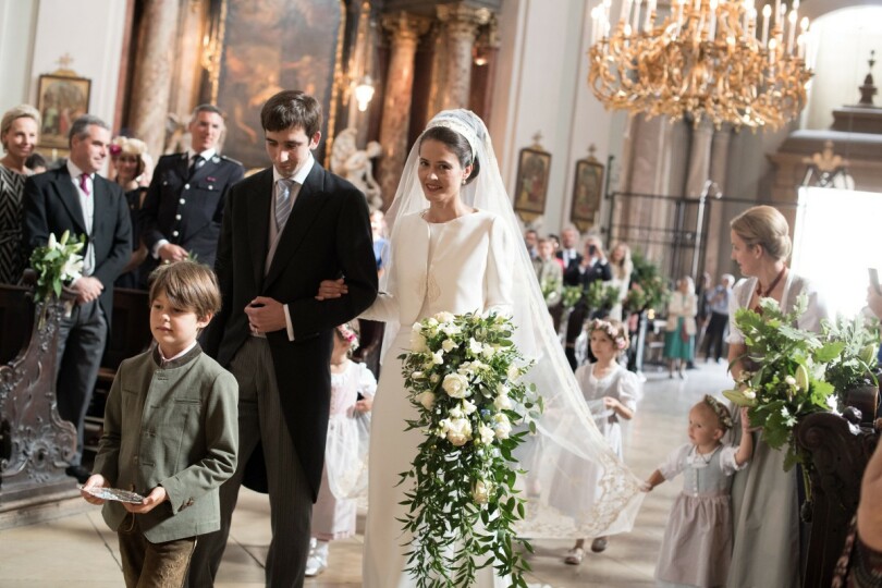Silhouette de liane et chignon à la Audrey Hepburn, la petite sœur de la duchesse de Vendôme est ravissante, les bras chargés de fleurs blanches. Derrière elle, un charmant cortège d’enfants en dirndl aux tons pastel est guidé par Philomena, elle aussi en tenue traditionnelle. L’épouse du prince Jean a joué les "wedding planners" de choc pour sa petite sœur, avec laquelle elle a veillé au moindre détail de la cérémonie.