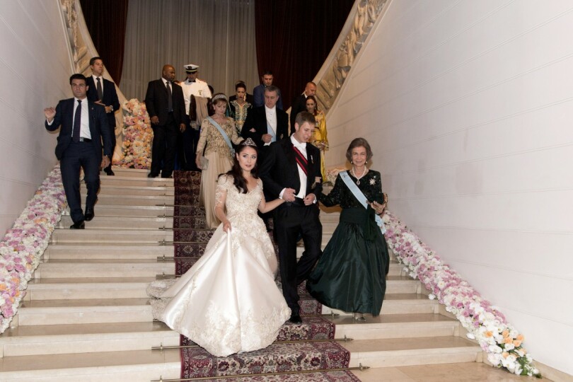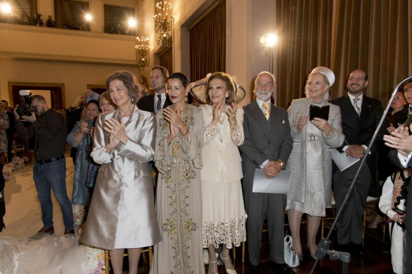 Au premier rang prennent place la reine Sophie d'Espagne accompagnée de sa soeur la princesse Irène de Grèce, l'impératrice Farah Pahlavi, toutes deux en tenue crème, la princesse Lalla Meryem du Maroc, le prince et la princesse Michael de Kent, mais aussi le prince Philipp de Liechtenstein et son épouse la princesse Isabelle sous un grand chapeau, le prince et la princesse Guillaume de Luxembourg, la princesse Léa de Belgique, la grande-duchesse Maria de Russie, la princesse héritière Margareta de Roumanie et le prince Radu, le duc et la duchesse de Bragance, le duc et la duchesse de Castro, l'archiduc et l'archiduchesse Georg d'Autriche, le prince Georg Friedrich de Prusse, le prince Mohamed Ali d'Égypte, le prince Joachim Murat, la princesse Marie-Thérèse de Bourbon-Parme, le prince et la princesse Michel de Grèce, le prince et la princesse Alexandre de Serbie, le prince Nicolas de Monténégro, les princesses Maria Pia et Marie Gabrielle de Savoie... dont le grand-père, le roi Victor-Emmanuel III, a séjourné dans le palais royal!