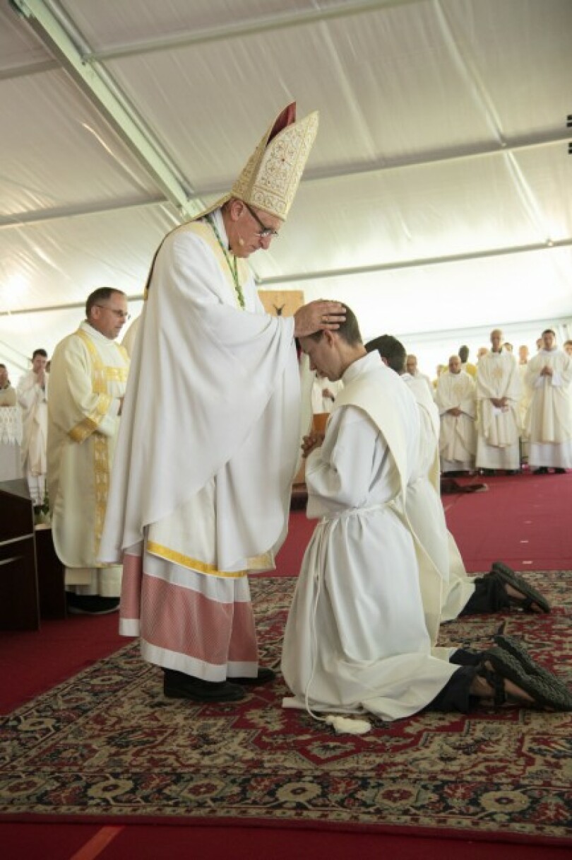 Tandis que la chorale entonne les litanies des saints, commence le rituel, jusqu’à ce que les nouveaux prêtres revêtent pour la première fois les ornements sacerdotaux apportés par leurs parents. Soudain, une longue acclamation accompagnée d’applaudissements fuse sous le chapiteau pour saluer les nouveaux prêtres.