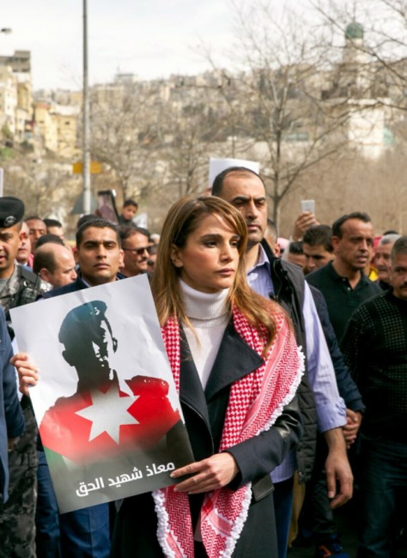 Là aussi, la souveraine fait front. Le 11 janvier 2015, à Paris, auprès du roi Abdallah II, elle défile parmi de nombreux chefs d’État et de gouvernement contre les attentats islamiques qui viennent d’endeuiller la France. "Il est inacceptable de représenter tous les prophètes", déclarait-elle ce jour-là pour ménager l’opinion jordanienne. Et "les gens, qu’ils soient musulmans ou d’autres confessions, ont le droit de se sentir offensés, de faire entendre leur rejet, de condamner, de critiquer, de protester, mais ils doivent le faire de manière pacifique et respectueuse."