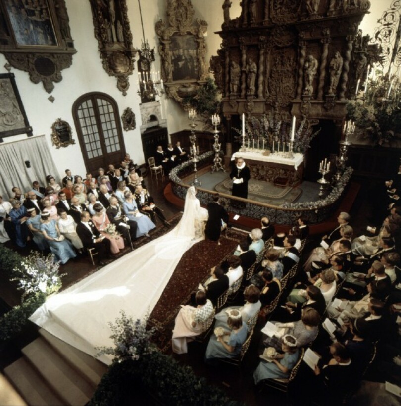 Enfin, voici le fiancé puis, dans une voiture découverte, la reine Ingrid de Danemark et son père, le roi Gustaf VI Adolf de Suède. Devant Holmens Kirke, un détachement de la Marine rend les honneurs lorsque la princesse Margrethe arrive au bras de Frédéric IX en grand uniforme d’amiral de la flotte. Bientôt, la cérémonie débute, présidée par monseigneur Erik Jensen, évêque d’Aalborg et aumônier royal.