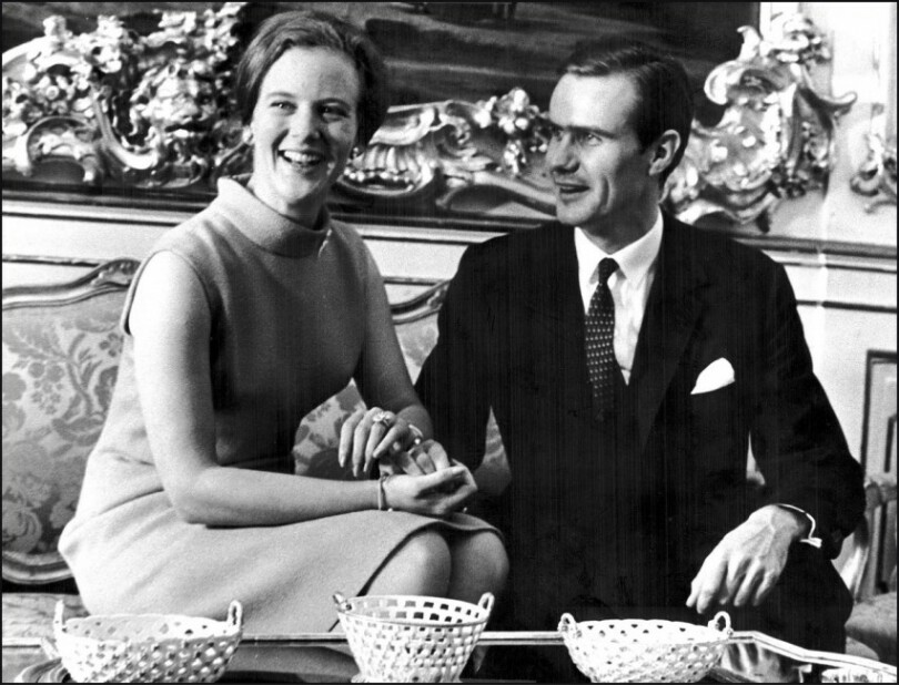 Au début de l’été 1966, Margrethe révèle à ses parents le nom de celui qui occupe ses pensées depuis bientôt trois ans. Le prétendant est présenté au roi et à la reine. Il séjourne à plusieurs reprises au château de Fredensborg, en toute discrétion. Ou presque. Le 2 septembre, le journal Ekstra Bladet titre sur les fiançailles de la princesse héritière. Le palais ne dément pas. Trois jours plus tard, les fiancés encore "officieux", apparaissent à la foule qui leur fait fête.