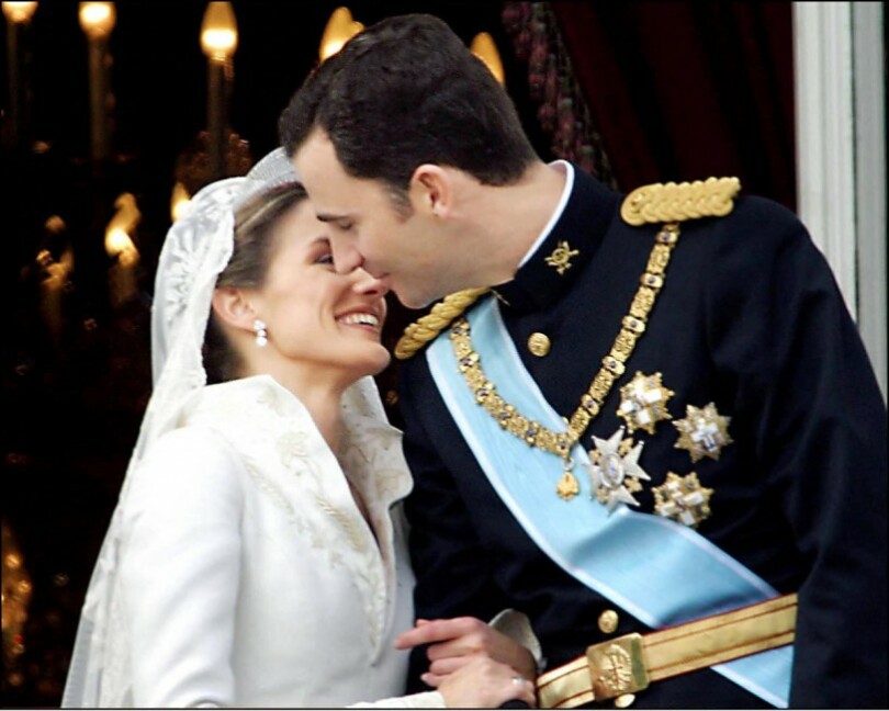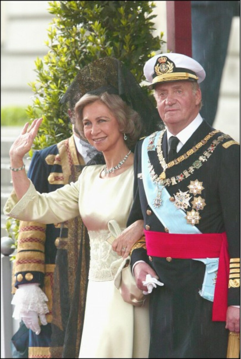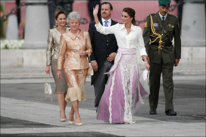 Derrière les grilles du Patio de la Armeria, le public s'impatiente. Il attend ces têtes couronnées dont la liste est plus longue encore que lors du mariage à Copenhague de Frederik et Mary. Mais l'Espagne n'est pas une redite du Danemark. Les monarchies perses et arabes font cortège, du prince Moulay Rachid à Rania de Jordanie, de l'impératrice Farah d'Iran à la bégum Aga Khan, en passant par les princes saoudiens pour la plupart amis personnels du roi Juan Carlos.