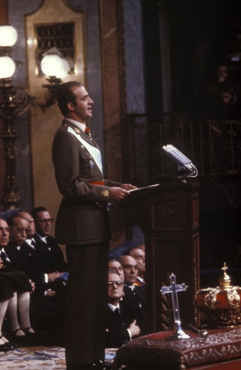 Je n’avais pas dormi, ce qui explique mes cernes. J’étais très angoissé par mon discours, que j’ai réécrit au moins dix fois. Le premier discours en tant que roi. Un véritable baptême du feu! J’avais quelques minutes pour expliquer ce que je pensais faire: être le roi de tous les Espagnols. Il faut rappeler que je prenais la parole face à aux membres du parlement, entièrement dévoués à Franco. Je ne savais pas comment ils allaient réagir.