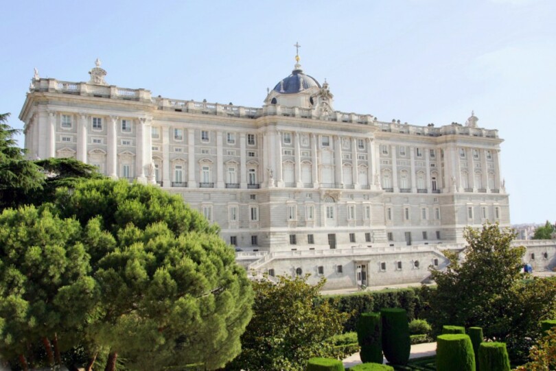 Le premier palais, édifié en 1561 sous le règne de Philippe II sur les ruines d’un alcazar médiéval des rois maures de Tolède, a entièrement disparu dans un incendie en décembre 1734. Et c’est à Philippe V, petit-fils de Louis XIV et premier roi Bourbon d’Espagne, que l’on doit l’édification de l’actuel palais baroque, de 135.000 mètres carrés et 3.418 pièces, inspiré des plans établis par le Bernin pour le Louvre, et construit de 1738 à 1755.