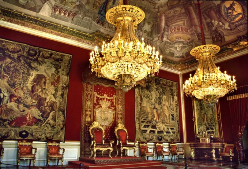 Son fils Charles III en fait la résidence officielle du souverain espagnol, à partir de 1764, et achève la décoration intérieure de marbres d’Espagne, stucs et bois sculptés. De cette époque datent la salle du trône au plafond peint par Tiepolo, le mobilier napolitain de bois doré, et les lustres de Venise.