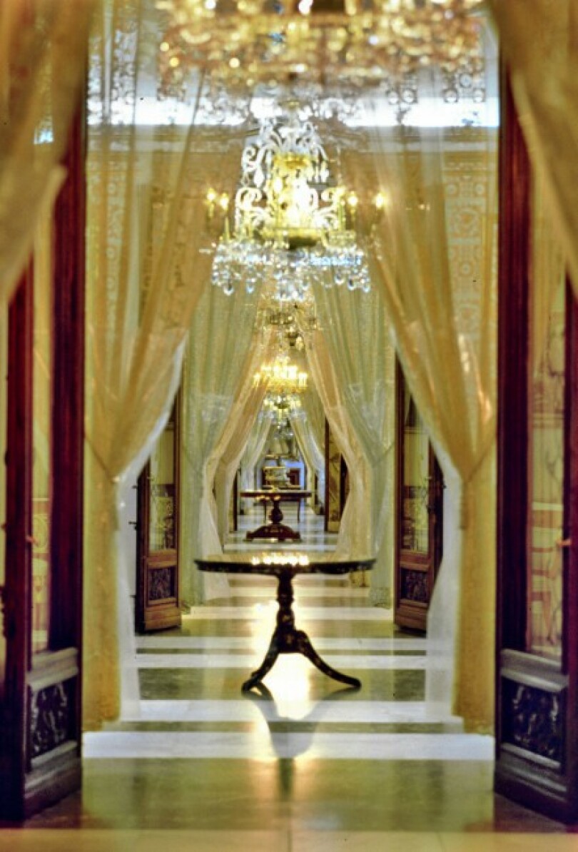 Dans la chambre de la reine, transformée en salon de musique par Isabelle II, les visiteurs peuvent toujours admirer le piano offert à l’arrière-arrière-grand-mère de Juan Carlos par Eugénie, l’impératrice des Français. Mais les pièces les plus extravagantes du palais demeurent sans conteste le cabinet arabe aux stucs polychromes et le salon de porcelaine, couvert de délicates barbotines aux tons blanc et or de la manufacture madrilène du Buen Retiro.