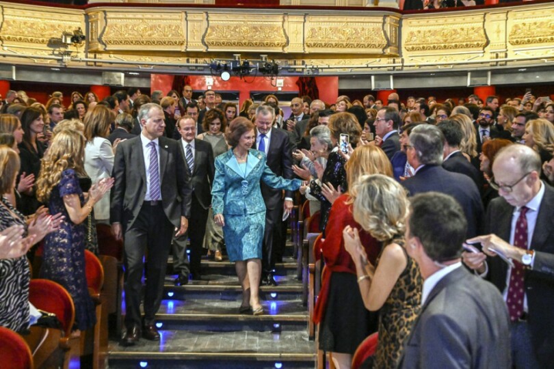 Quand elle fait son arrivée au théâtre de Madrid, ce 24 octobre 2018, quelques semaines avant ses 80 ans pour la remise des prix BMW, récompensant de jeunes artistes peintres, Sophie d’Espagne reçoit une émouvante ovation. Accompagnée de sa soeur, la princesse Irène de Grèce, elle prend place au balcon royal, remerciant d’un sourire l’assistance qui, debout, ne cesse de l’applaudir.