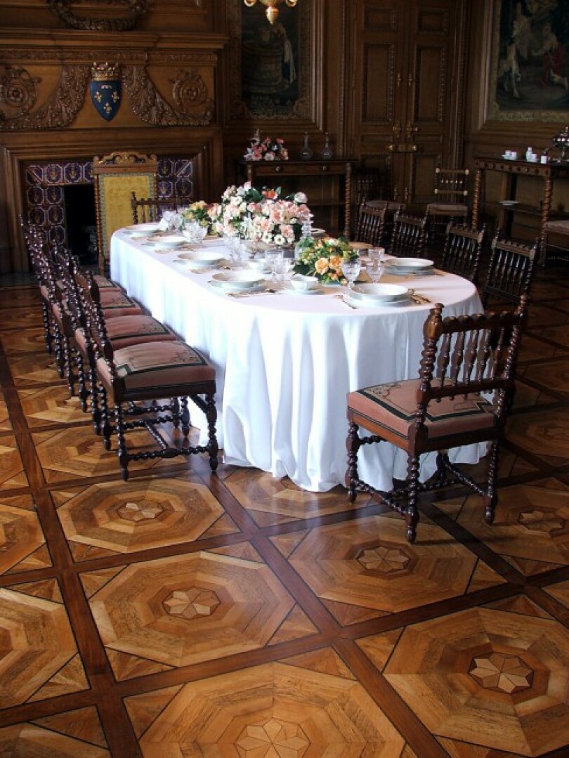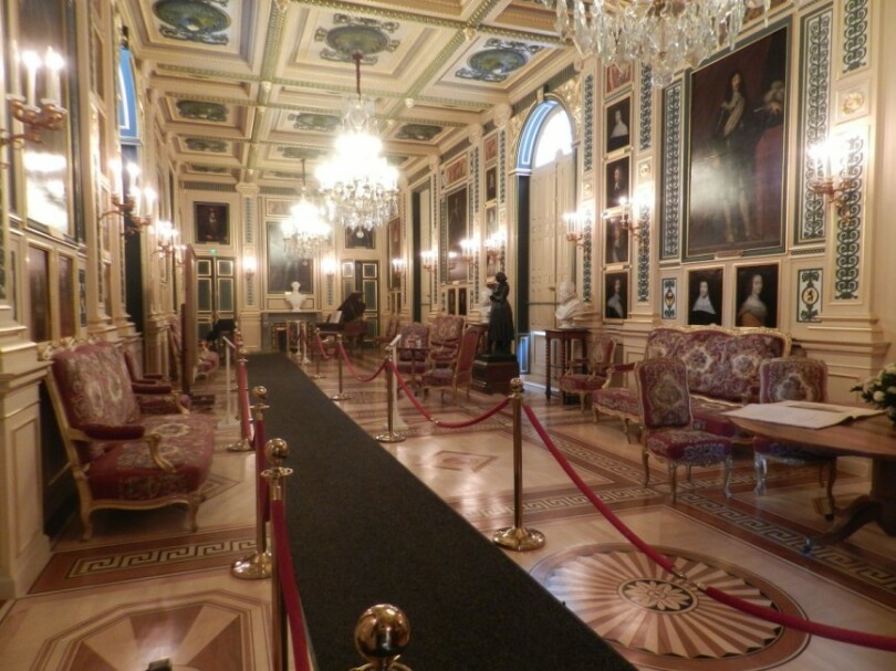 La chapelle où est exposée la berline d’apparat du roi Jean V de Portugal et l’escalier d’honneur occupent l’aile sud. Viennent ensuite les quatre salles de l’appartement de la duchesse d’Orléans, belle-fille de Louis-Philippe, qui deviendra aussi celui de la première comtesse de Paris. L’ascenseur métallique néogothique, installé par Viollet-le-Duc, mène aux plus belles pièces du château: les salons de la Grande Mademoiselle, dont le chiffre peint se devine encore sur les boiseries.