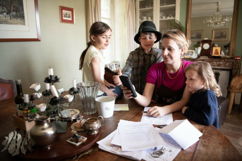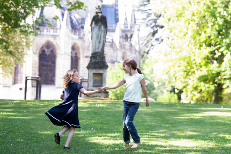 En ce vendredi, la discipline scolaire se relâche quelque peu, mais le bonheur, la vivacité des enfants font plaisir à voir. Et nous ramènent tout droit à l’univers enchanté de la comtesse de Ségur. D’ailleurs, assise sur son lit, la princesse Antoinette, 8 ans, lit quelques pages des Petites filles modèles. Ravi d’avoir échappé le temps du confinement à son pensionnat de Carcassonne, le prince Gaston, l’aîné du haut de ses 10 ans bientôt et demi, a fugué du côté du poulailler ou de son jardin potager. Pieds nus, comme Antoinette et Joseph. Seule Louise-Marguerite, coquette, a mis sa plus jolie robe, et des souliers. "Difficile de garder longtemps Gaston à sa table d’étude, sourit la Comtesse de Paris, il n’est heureux que parmi les bêtes et les mains dans la terre. Il rêve d’être paysan. Une belle vocation mais qui réclame aussi des études pour être pleinement aboutie."