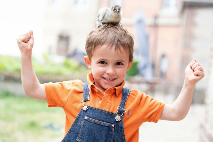 Comme une volée de moineaux, les petits princes se sont égayés aux quatre vents pour se disputer les soins à apporter aux poules et poussins, courir, faire la ronde ou grimper à l’assaut de l’arbre-cabane, avec sa branche qui s’avance tel le beaupré d’un navire corsaire au service du… roi, cela va sans dire. À un an et demi, Jacinthe se contente de s’asseoir sur le dos de Léonora qui la désarçonne sans même paraître s’en apercevoir. Brave cœur, le prince Gaston hisse sa petite sœur sur ses épaules pour la consoler.
