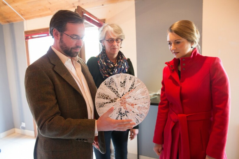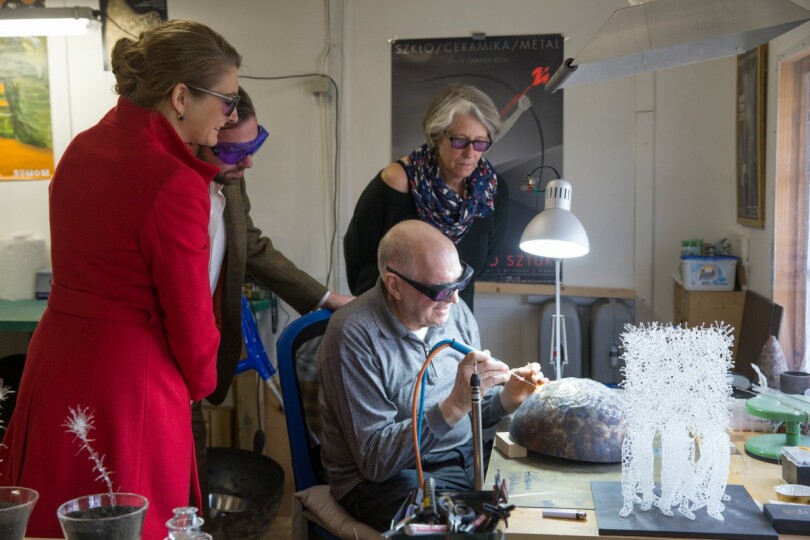 C’est chez eux que vont les princes, dans leur atelier d’Arsdorf. À Stéphanie et Guillaume, les deux artisans d’art dévoilent leurs savoir-faire et leurs techniques qui leur permettent de créer de véritables dentelles de verre, oeuvres oniriques et quasi surréelles. Des liens se sont tissés, amicaux. "La promotion de l’art me tient particulièrement à coeur, assure la grande-duchesse héritière. À l’exposition De mains de maîtres, les Luxembourgeois étaient surpris de ce qui se faisait dans leur pays. Comme je suis sûre que les visiteurs du Grand Palais seront bientôt étonnés."