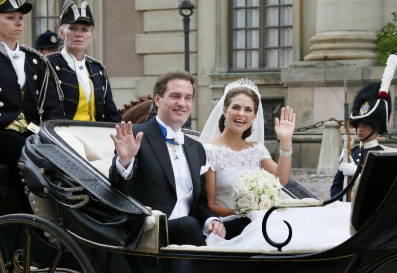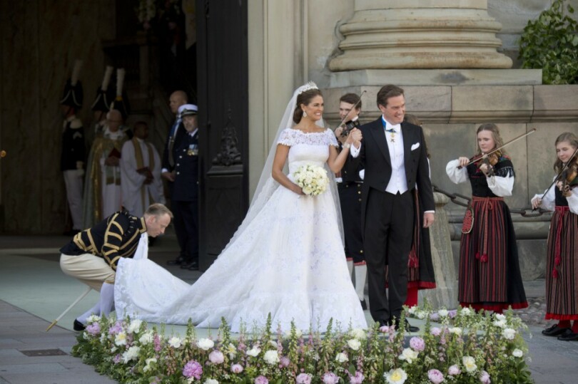 Là-bas, les autres invités profitent déjà des jardins à la française. Le Tout-Stockholm est là, les héritiers des dynasties industrielles et traders amis du marié. Certains journaux ont compté 20 milliardaires présents. Madeleine et Chris sont les derniers à descendre du bateau pour rejoindre leurs 500 hôtes qui ont pris place sur l’escalier d’honneur.