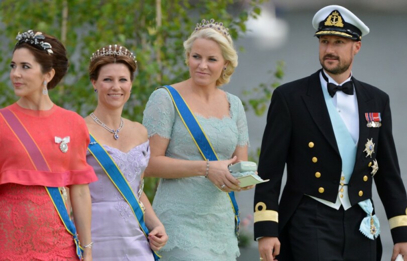 Sur les bancs latéraux des premiers rangs, les têtes couronnées ont pris place. Tiares précieuses et épaules sagement couvertes sont de rigueur. Mette-Marit, arrivée le matin même par le train, est particulièrement émue tandis que Charlène, dans un ensemble chocolat à la fois ajusté et bordé de volant, est assise à la gauche de Frederik de Danemark. Guillaume et Stéphanie de Luxembourg en profitent pour se remémorer le souvenir, tout proche encore, de leurs propres noces.