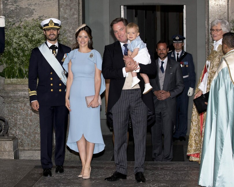 Épanouie par sa toute récente maternité, la princesse Sofia fait son apparition dans un camaïeu de bleu et de beige, entourée par Carl Philip et Christopher O'Neill, le mari de Madeleine, qui tient leur fils de neuf mois, Nicolas. Quant au petit Alexandre, né il y a moins de six semaines, il est resté sagement dormir à Drottningholm.