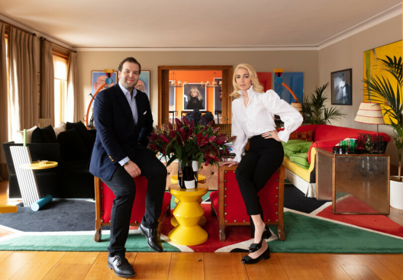 Son mari vient d’arriver dans l’appartement familial du quartier de Mayfair à Londres, dont les baies vitrées donnent sur Green Park. Le prince Charles réside à deux pas de cet immeuble des années 1950 où vivait autrefois le grand-père de Joseph. Le couple a mêlé les meubles chinés à Pimlico à ceux si colorés et géométriques du mouvement Memphis que collectionnait la mère de Sabine. D’autres encore proviennent de l’ancien riad des Getty à Marrakech.
