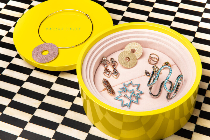 Depuis la naissance de Jupiter, la belle a mis ses créations de bijoux en sommeil pour mieux profiter de cette période bénie de la petite enfance. "Tout est allé si vite, relève-t-elle. Mes études de gemmologie terminées, j’étais partie en vacances à Beyrouth où j’avais fait produire quelques prototypes. Neiman Marcus, le grand magasin américain, a passé commande de la première collection, Relic." Année après année, suivront Harlequin de tonalité Art déco, Prospero aux couleurs de la Renaissance italienne, Memphis et enfin Big, aux formes géométriques pavées de pierres multicolores inspirées d’un jouet de Gene. "Je n’intellectualise pas les choses. L’humeur du jour est la meilleure des inspirations", reconnaît-elle.