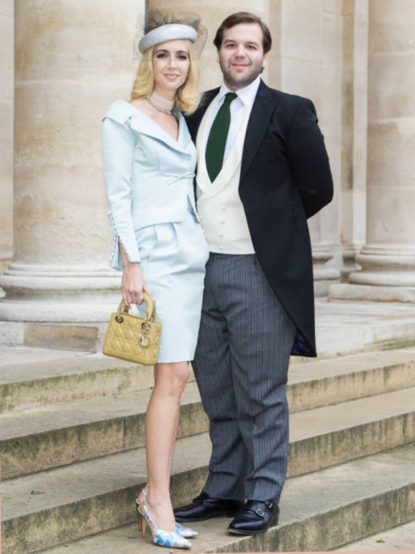 Chaque mariage royal auquel elle est invitée est l’occasion d’un coup d’éclat couture, d’une fantaisie colorée et bien orchestrée, quitte à ce qu’elle s’invite à la conception de sa tenue. À Windsor pour la princesse Eugenie, c’est un tailleur rose d’Emilia Wickstead assorti à une coiffe de la même étoffe, nouée à l’arrière de la tête. À Paris, dans la cour des Invalides pour le prince et la princesse Napoléon, elle porte un tailleur couture de Dior époque Gianfranco Ferré. Et bien sûr à Rome, il y a quatre ans, elle épouse Joseph dans une somptueuse robe cape de Schiaparelli brodée d’un inoubliable soleil, comme dans un rêve. Sabine aime associer les couleurs, le jaune du soleil, le bleu, le rouge et l’orange qui rendent heureux.