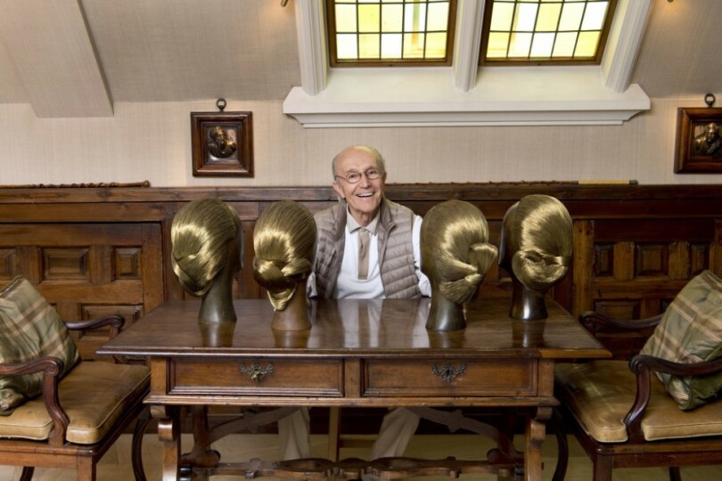 Au dernier étage d'un immeuble moderne du XVIIIe arrondissement parisien, se cache le décor le plus inattendu qui soit. Celui d'un manoir anglais du XVIIe siècle avec ses portes néogothiques, sa cheminée, ses Memento mori et ses bibliothèques tapissées de livres reliés. "Bienvenue chez moi!" lance Laurent Gaudefroy, 80 ans et des airs de jeune homme. "Merci le yoga, j'ai pris mon premier cours en 1965 et je pratique tous les jours. Avec mon métier, c'était indispensable", ajoute celui qui a publié Les Secrets d'un coiffeur de stars, ou les mémoires du "Roi du chignon" comme le surnomme la presse américaine à la fin des années 1960.