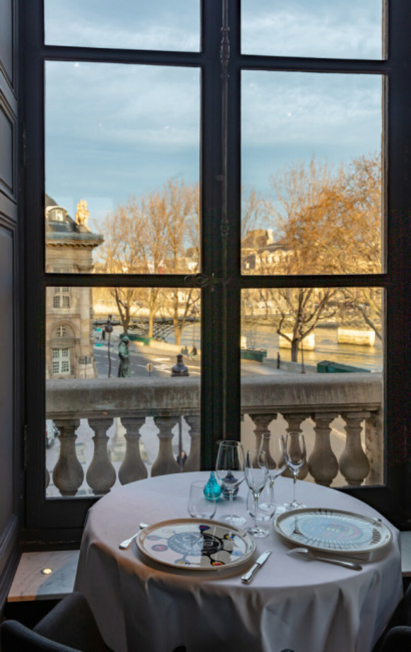 Organisée par un voisin urbaniste, la découverte de cet édifice, qui abrite la plus ancienne manufacture au monde, s’impose à lui comme un cadeau du ciel: il y a l’escalier monumental, les onze fenêtres, l’Académie française tout près… "Je passais de salle en salle, et le restaurant se dessinait dans ma tête. Émerveillé, je réalise très vite que c’est ici et nulle part ailleurs que je dois travailler." Mais il faut attendre cinq ans –et la fin d’un long et contraignant chantier mené dans le bâtiment classé au patrimoine mondial de l’Unesco– pour qu’enfin l’histoire d’amour se concrétise.