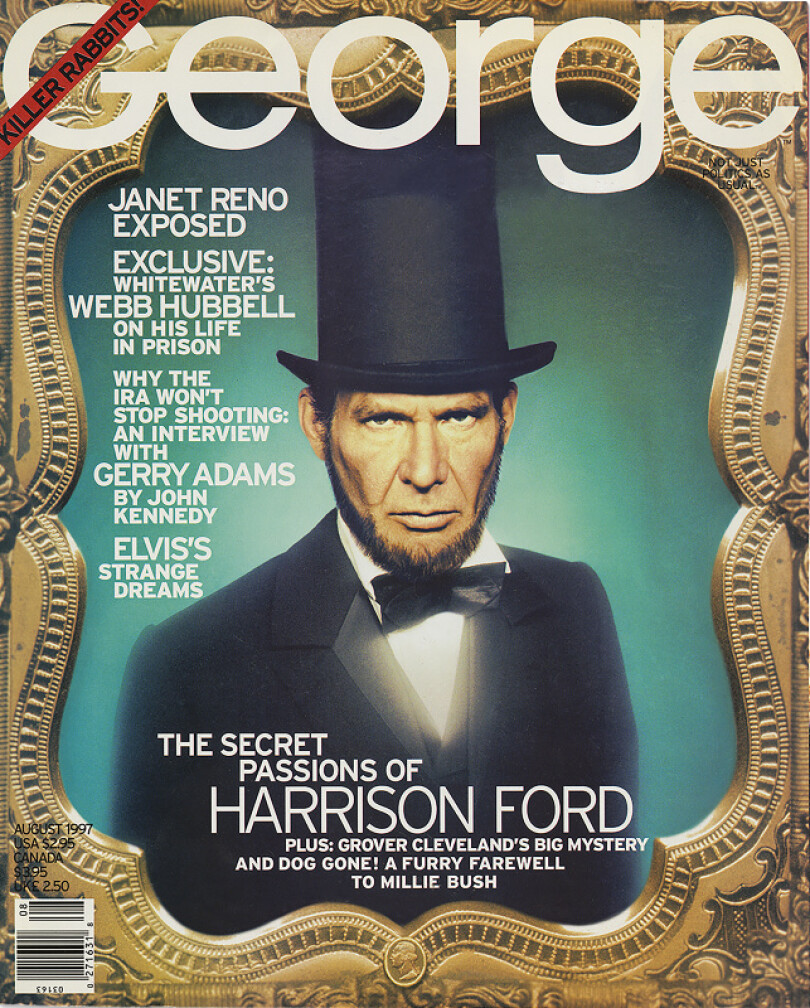 John avait décidé de lancer un magazine politique et venait de faire la tournée des grands groupes américains, mais pour la première fois de sa vie, on lui avait dit "non". Avec le recul, cela paraît incroyable, mais il y avait déjà Times, Newsweek, le New York Magazine. Daniel Filipacchi a alors une intuition formidable. Il "kidnappe" l’héritier. À l’époque, on me demande de lui transmettre le feu sacré. Je déjeune avec lui et, moi qui carbure à l’actualité, je lui dis: "Il faut que tu fasses des scoops, que tu interviewes le prince Charles ou Fidel Castro." Mais je sens bien qu’il a une vision différente des choses, veut s’inscrire dans la droite ligne de son père, celle du sens civique. Son intention est de pallier la désaffection des jeunes pour la politique en la déringardisant. Il déguise ainsi Harrison Ford en Abraham Lincoln. Cela va marcher un temps.